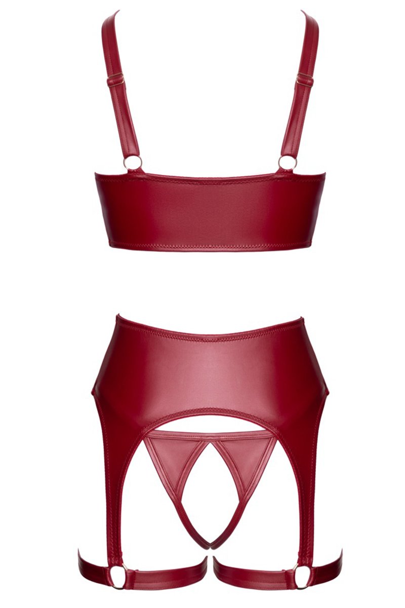 Ensemble lingerie ouvert 3 pièces rouge bordeaux Cottelli LINGERIE, pensé pour sublimer la silhouette avec audace et raffinement.