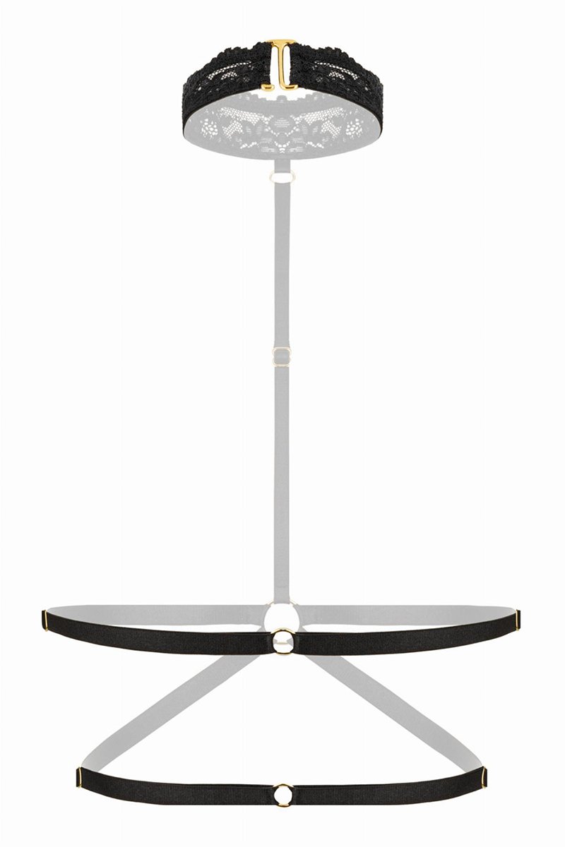 Viola by Christine est un harnais Bralette noir à lanières élastiques et col en dentelle à porter sur ou sous les vêtements, comme accessoire de mode ou dessous coquin.